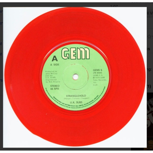 Does anyone have a red vinyl, solid centre, Stranglehold, by the UK Subs for sale? - Ask Questions and Get Answers about Music! - CDandLP Ask!
