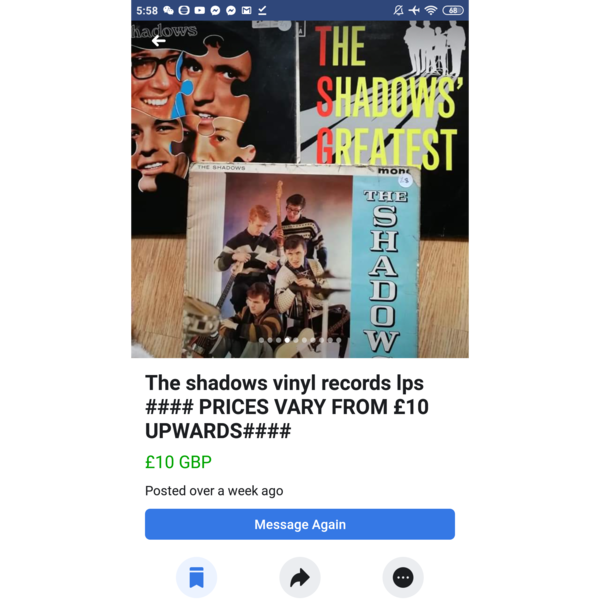 Hi Paul, I have seen a few postings selling the record from Facebook marketplace. Someone from Birmingham (UK) is selling one for £8, I have asked for close up photos of the vinyl as the sleeve is quite poorly. There are some scratches there as seen from the pictures she sent.