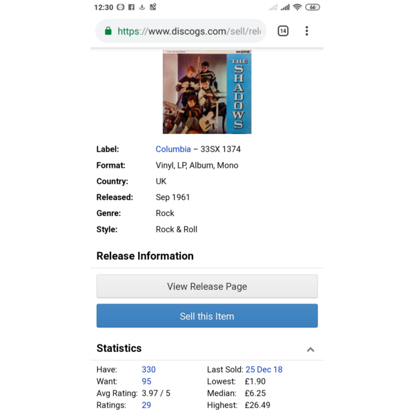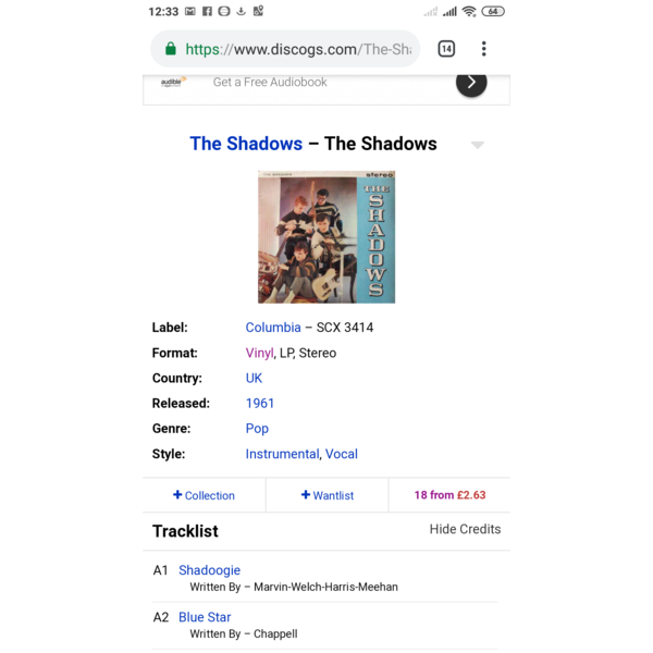 I am looking for the following pressing of the LP "The Shadows" (Columbia/EMI - SCX 3414).
